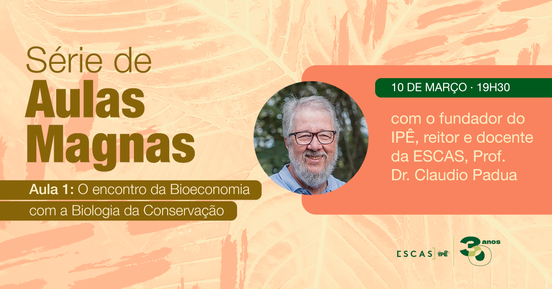 Nesta Aula Magna, Claudio Padua, pioneiro da Biologia da Conservação no Brasil, abordará de que forma a bioeconomia, principalmente quando foca em negócios de impacto com comunidades tradicionais, pode promover transformações sociais e ambientais. O evento faz parte das celebrações dos 30 anos da ESCAS-IPÊ.
